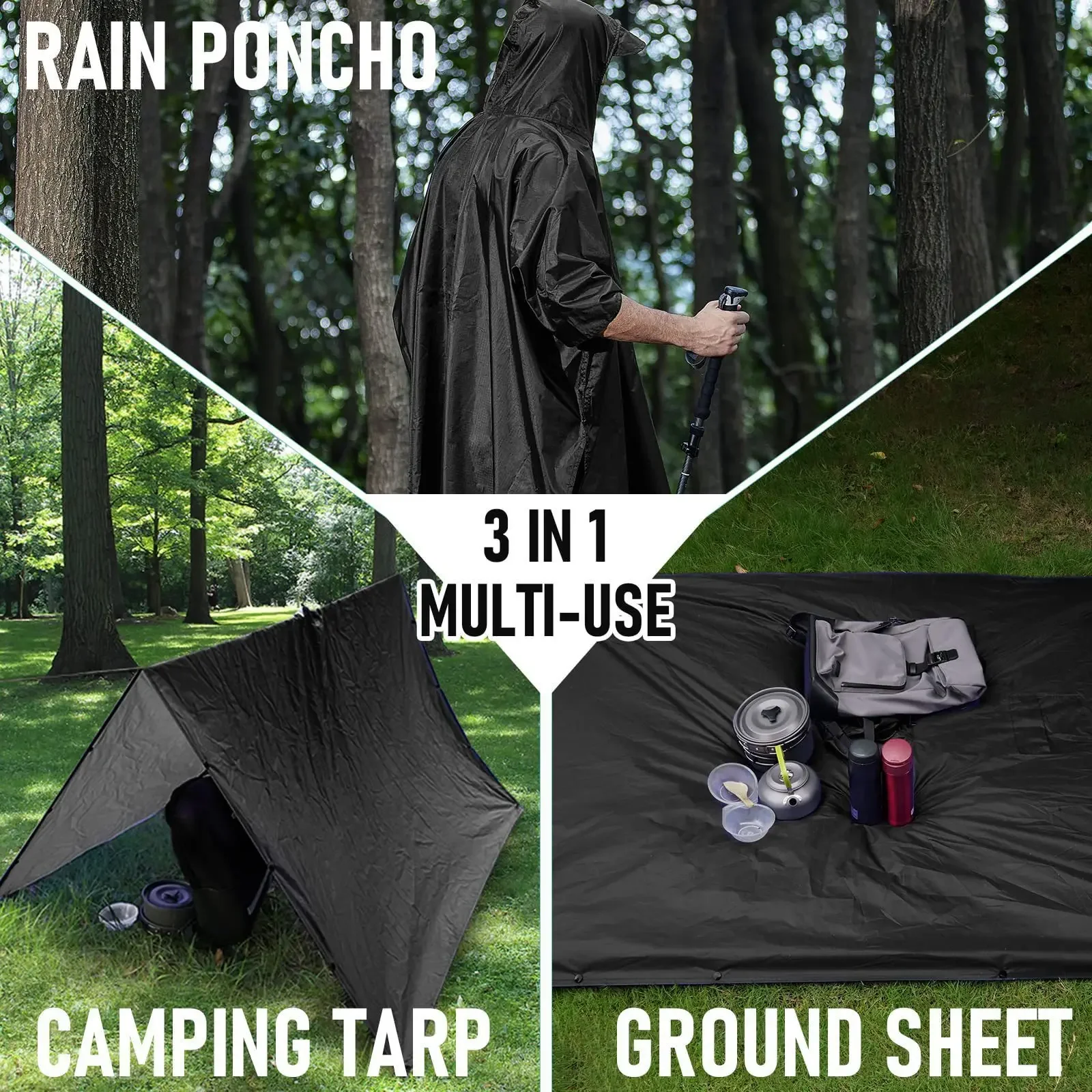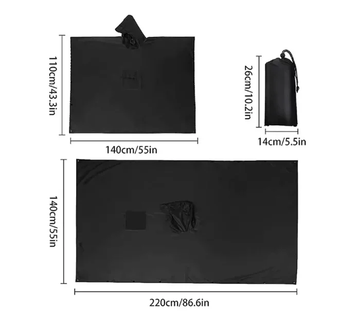 3 In 1 Outdoor Military Raincoat Hooded Sleeve Waterproof Rain Poncho Motorcycle Rain Cover Camping Hiking Travel Rainwear Tent
